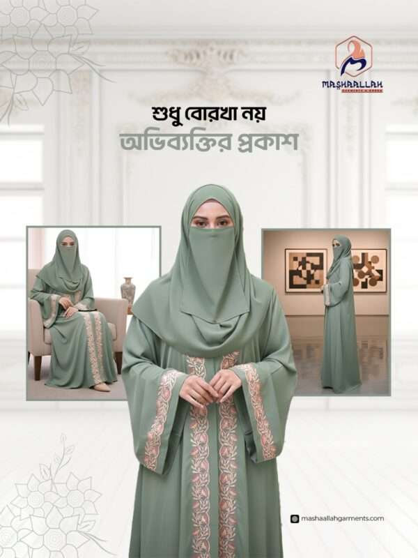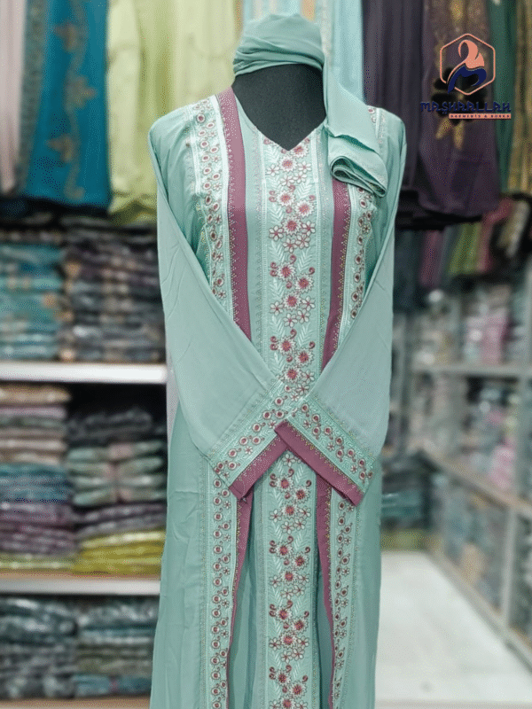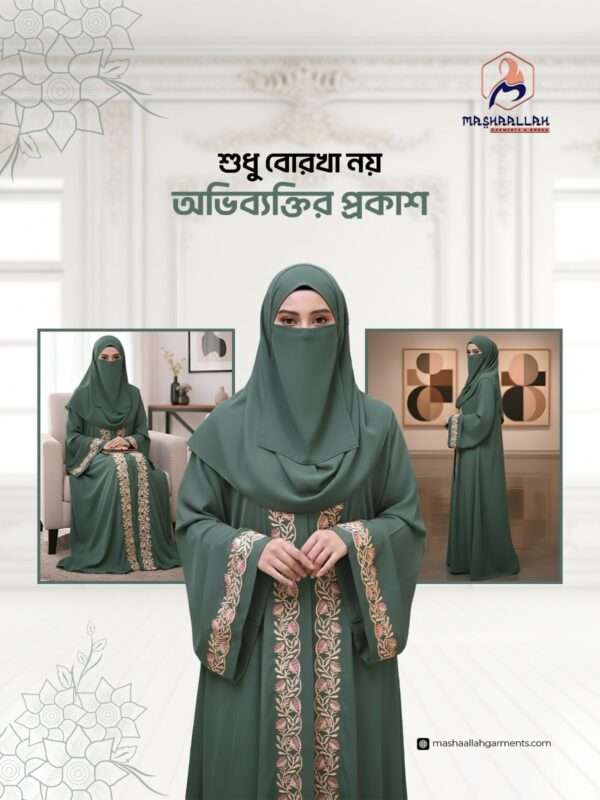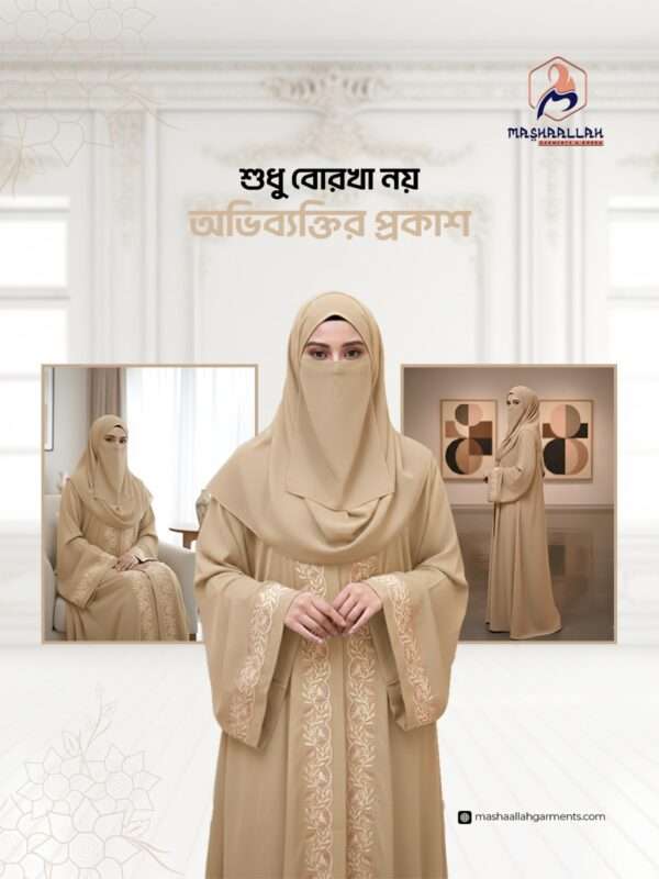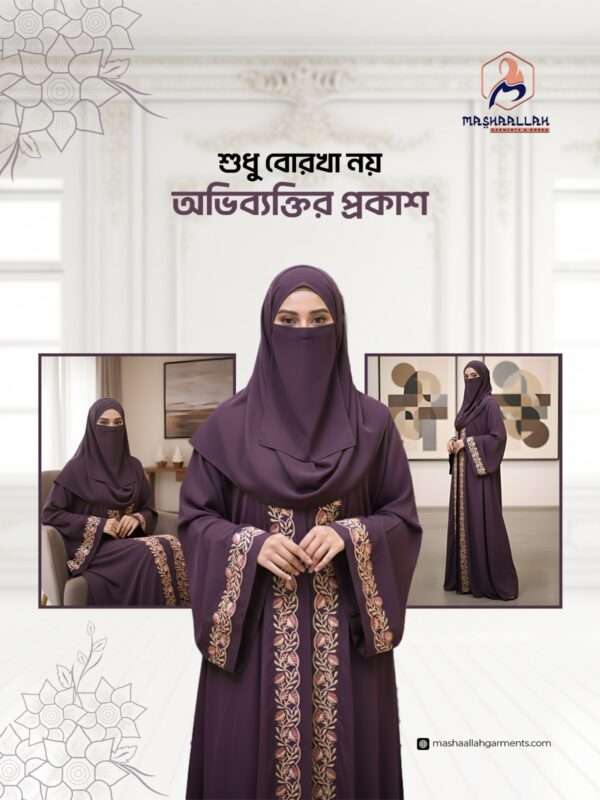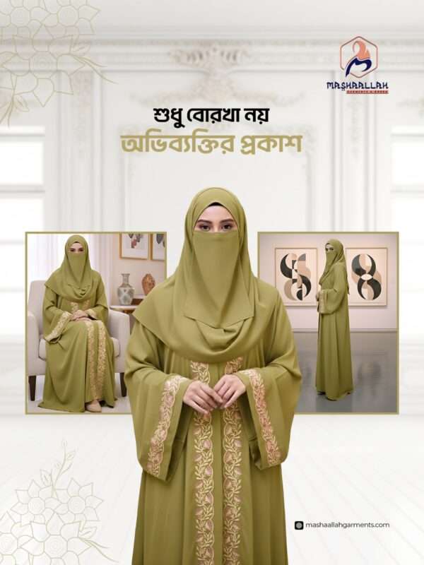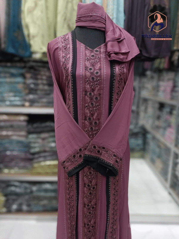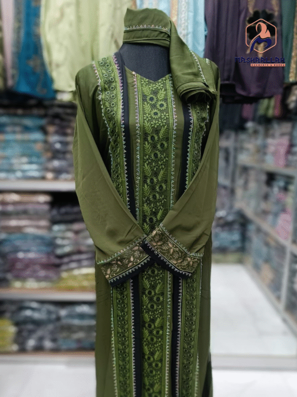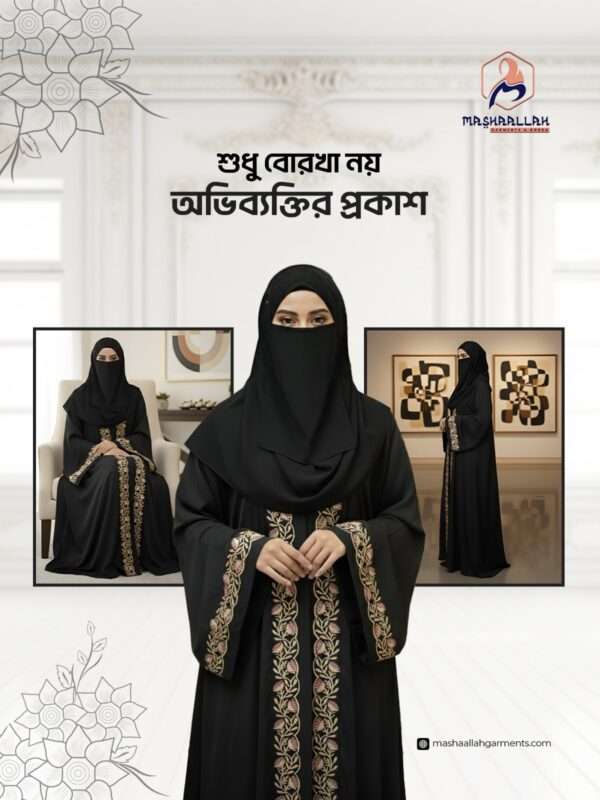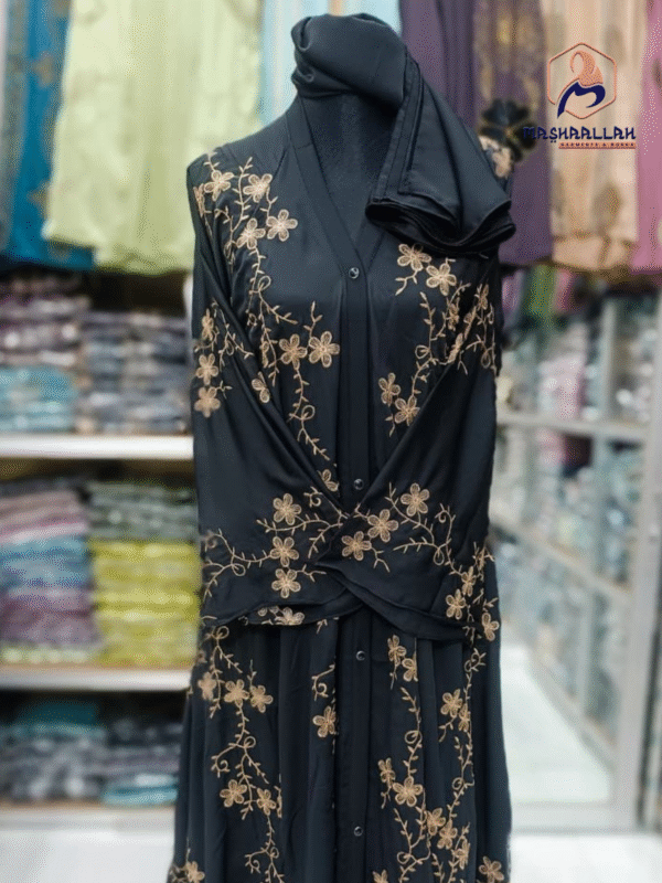 জাফরান এমব্রডারী কারুকাজ+লেইছ বোরখা