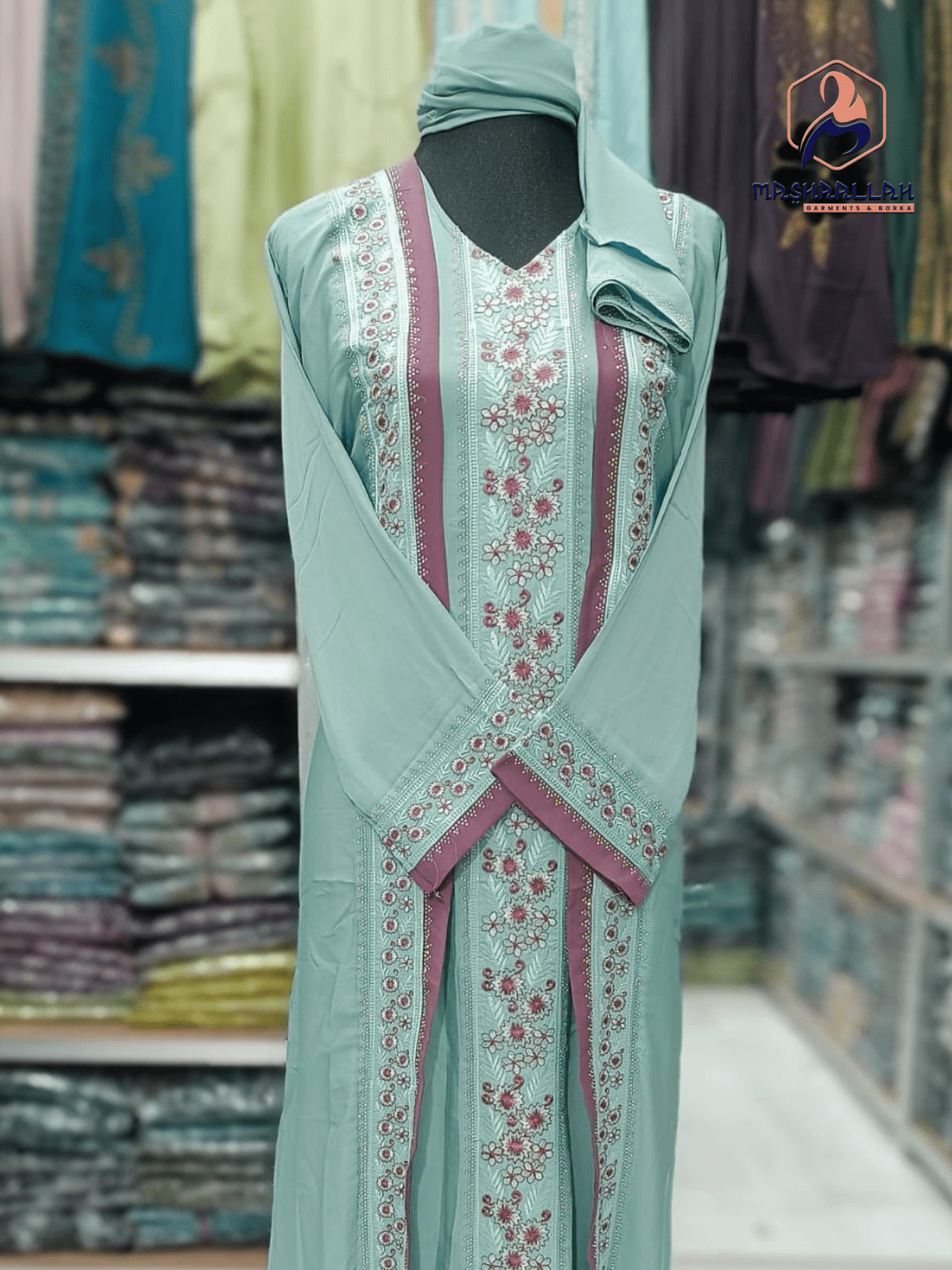 প্রিমিয়াম চেরি কাপড়ের এমব্রডারি + কন্টাস্ট পেনেল বোরখা