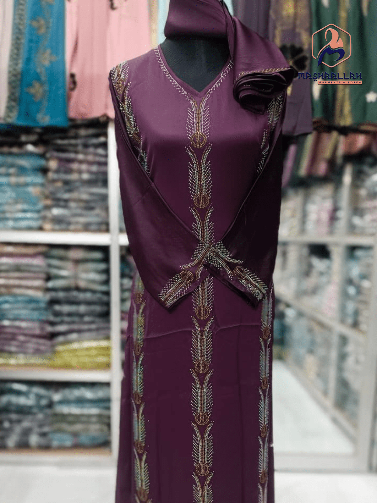 প্রিমিয়াম জাফরান এমসি স্টোন বোরখা